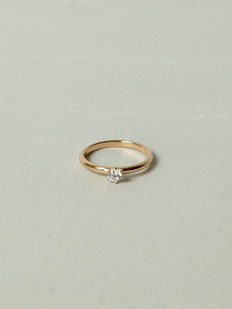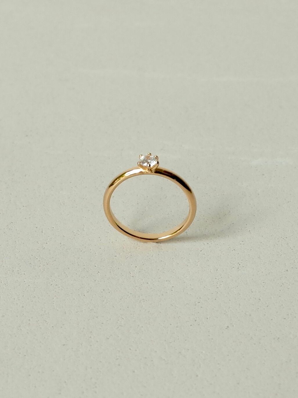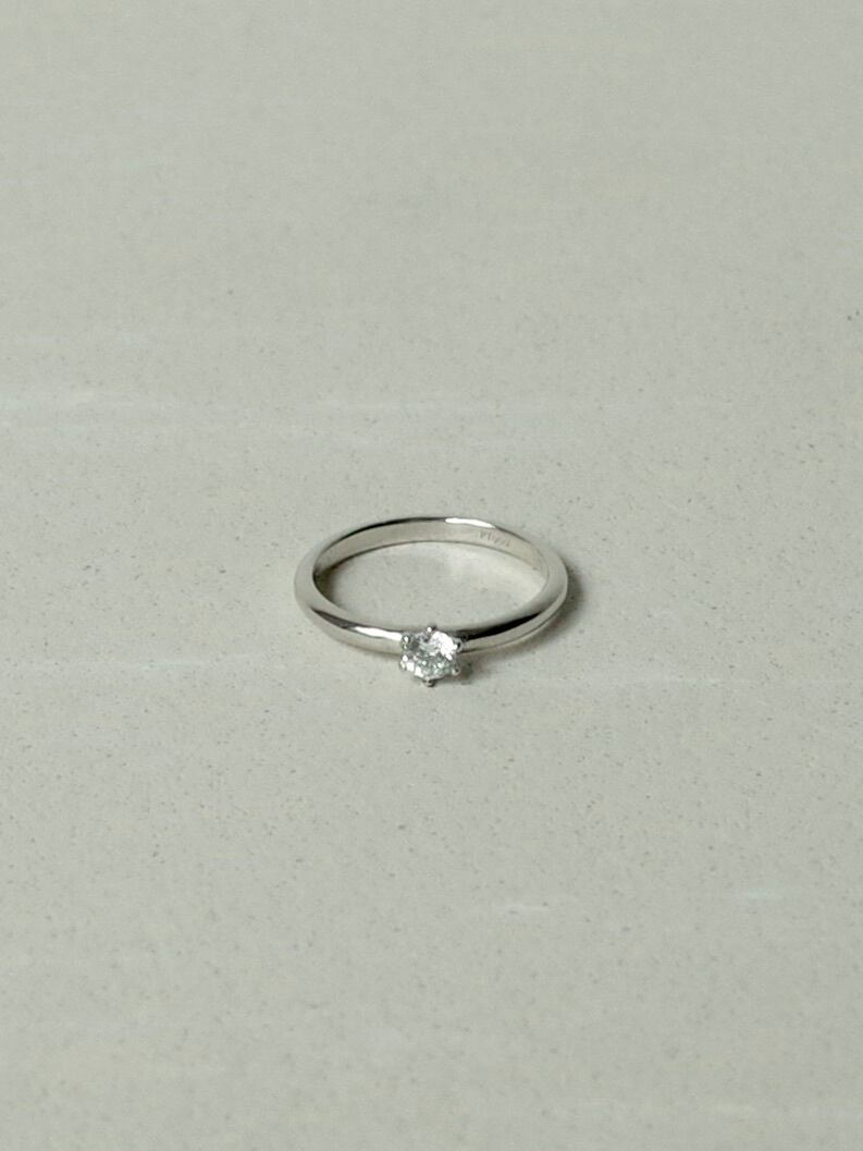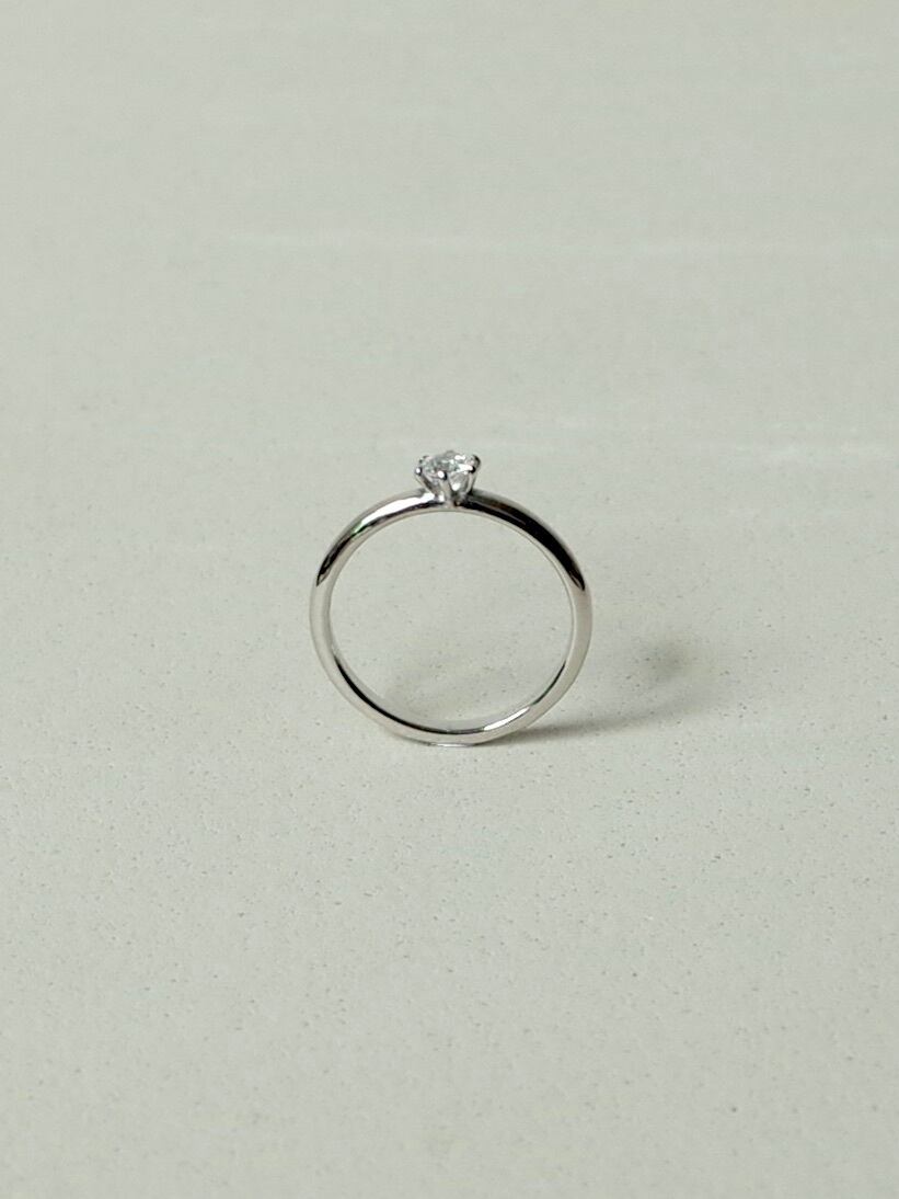 シンプルなフォルムに凛としたダイヤモンドが輝くリング。細身に仕上げているので着け心地も印象も軽やかで、他のリングとの相性も良いです。