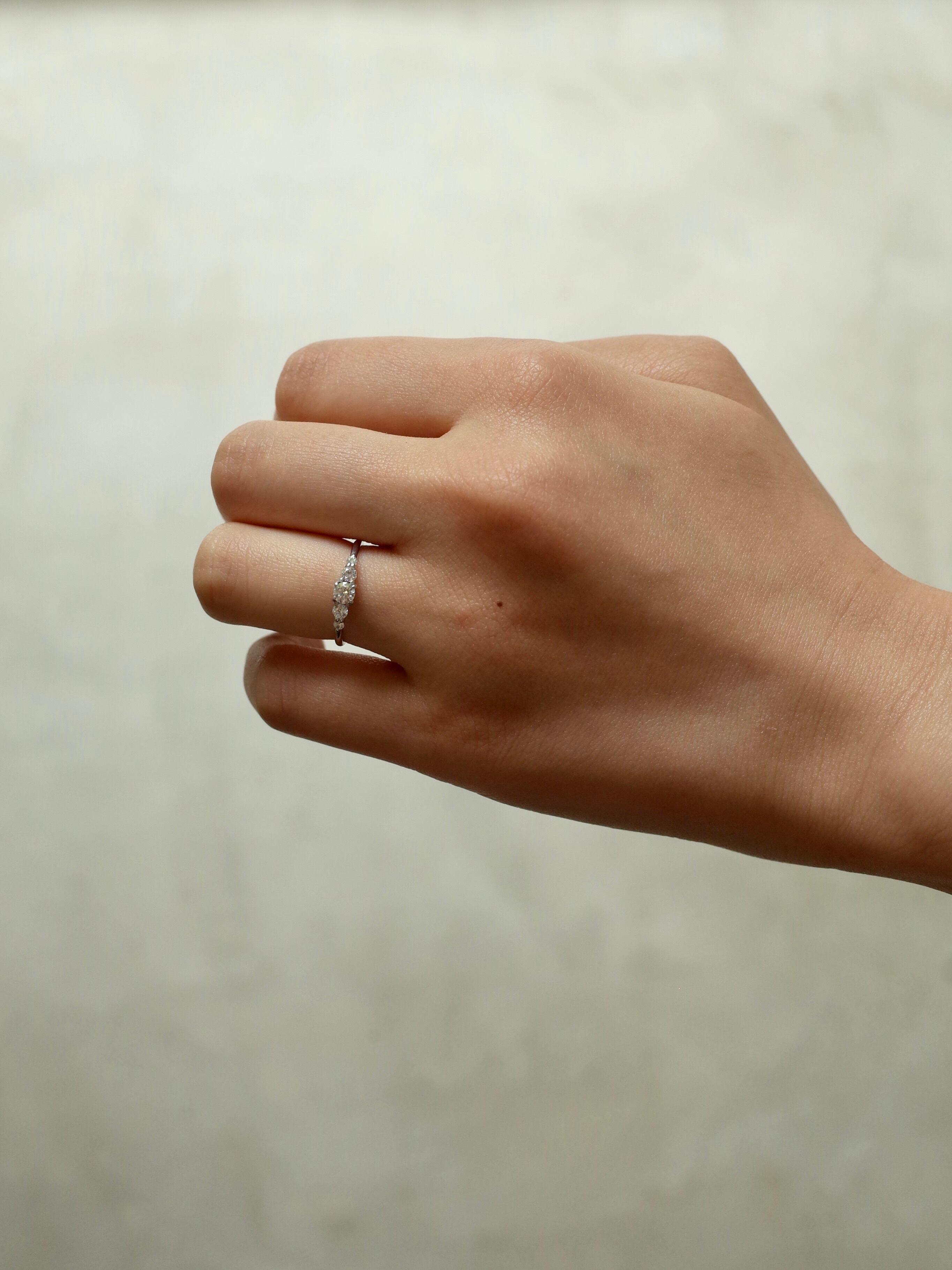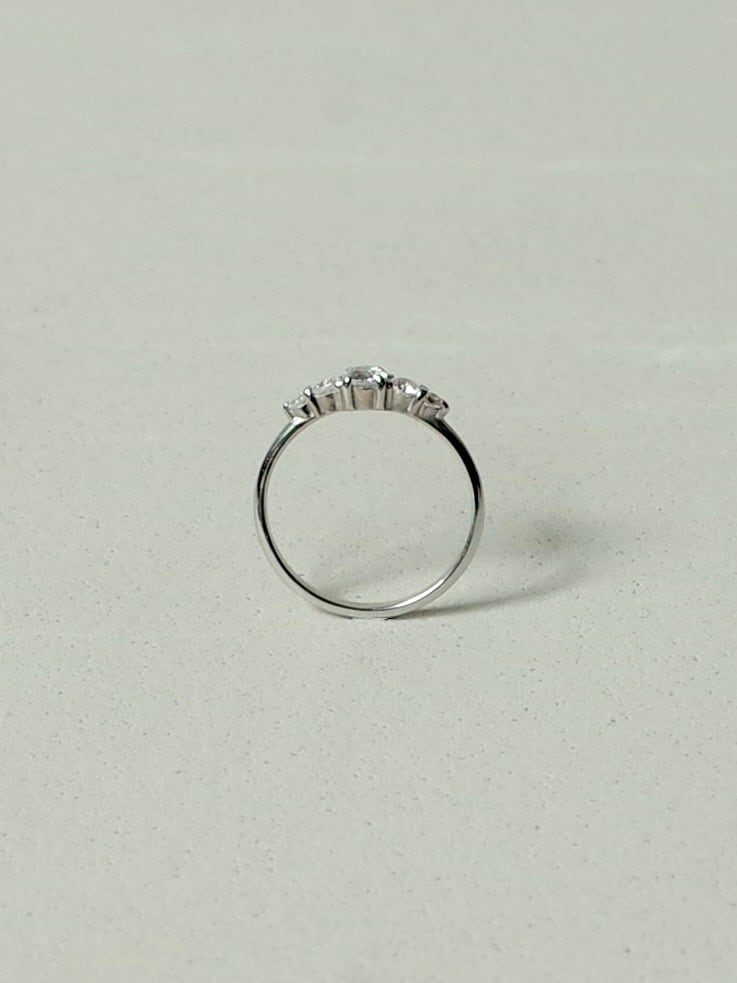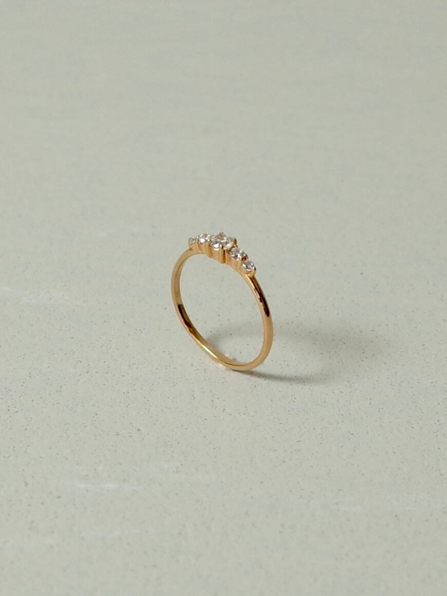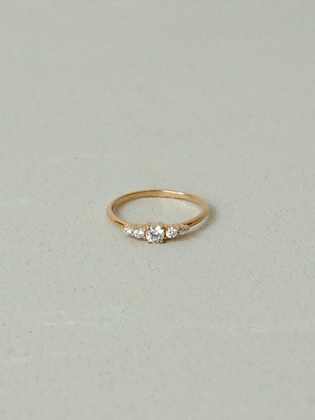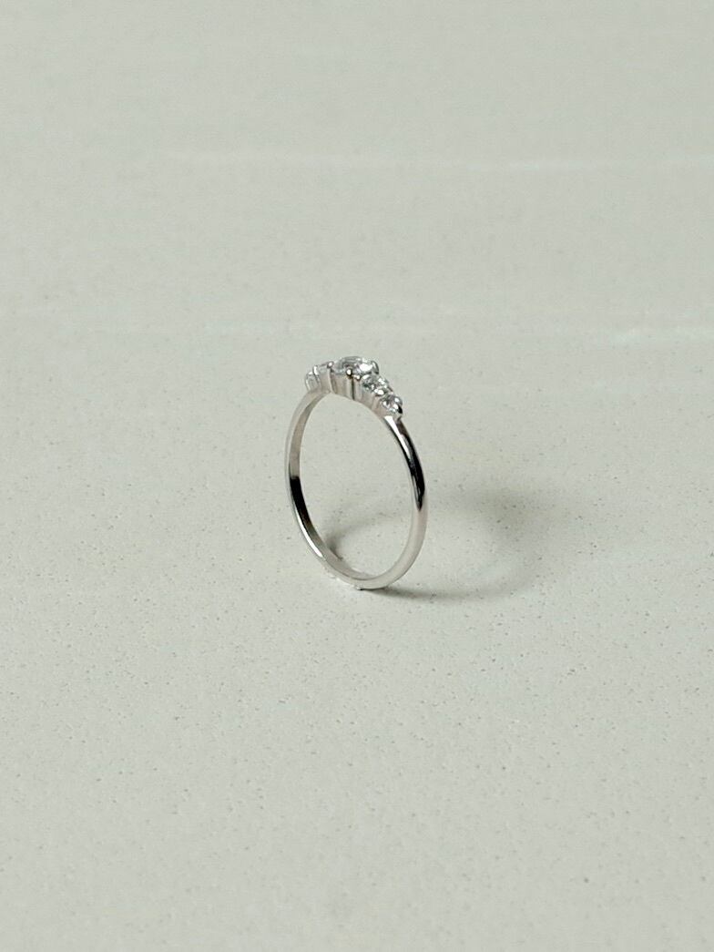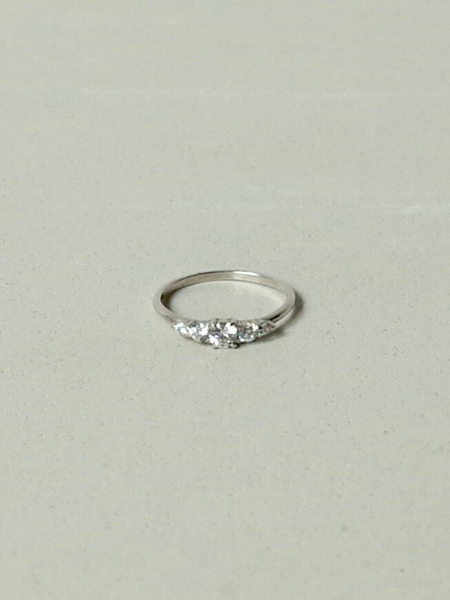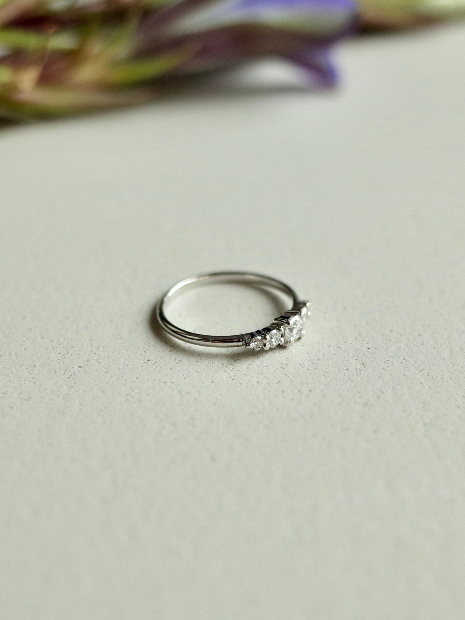 3種類の大きさのダイヤモンドがグラデーションするように並ぶリング。